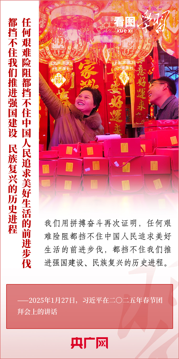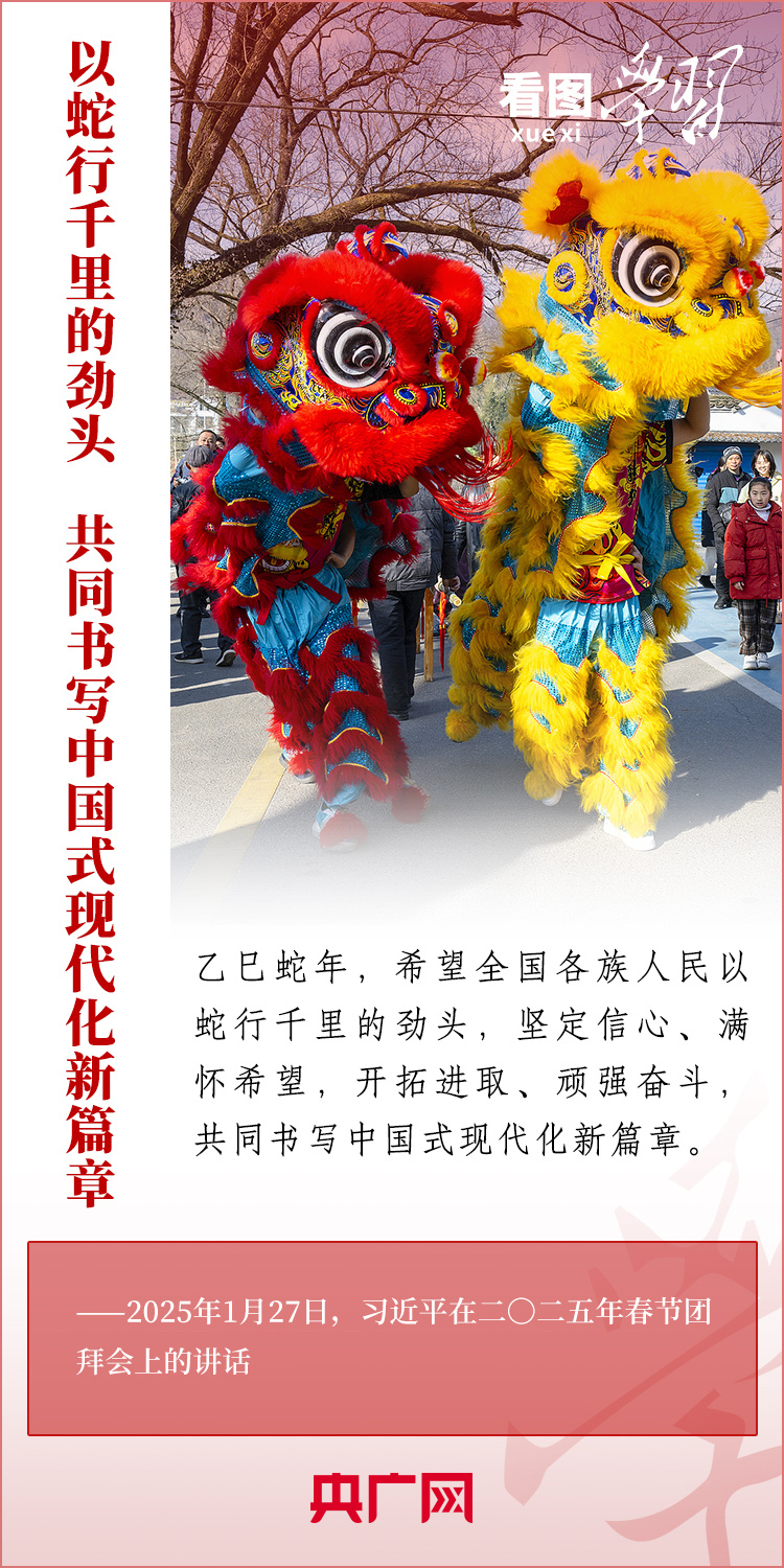 1月27日,中共中央、國(guó)務(wù)院在北京舉行春節(jié)團(tuán)拜會(huì),習(xí)近平總書(shū)記發(fā)表熱情洋溢的講話,向全國(guó)各族人民、港澳臺(tái)同胞、海外僑胞拜年并致以新春祝福。總書(shū)記在講話中深情回顧過(guò)去一年中國(guó)式現(xiàn)代化取得很不平凡的發(fā)展歷程,“希望全國(guó)各族人民以蛇行千里的勁頭,堅(jiān)定信心、滿懷希望,開(kāi)拓進(jìn)取、頑強(qiáng)奮斗,共同書(shū)寫中國(guó)式現(xiàn)代化新篇章?!币黄饋?lái)學(xué)習(xí)!
