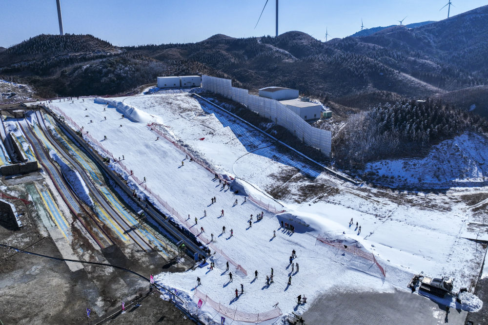 2025年1月23日,游客在湖北神農(nóng)架中和國際滑雪場滑雪。湖北省神農(nóng)架林區(qū)冬季降雪量豐富、雪質(zhì)蓬松,為中部地區(qū)滑雪愛好者提供了良好的練習環(huán)境。
