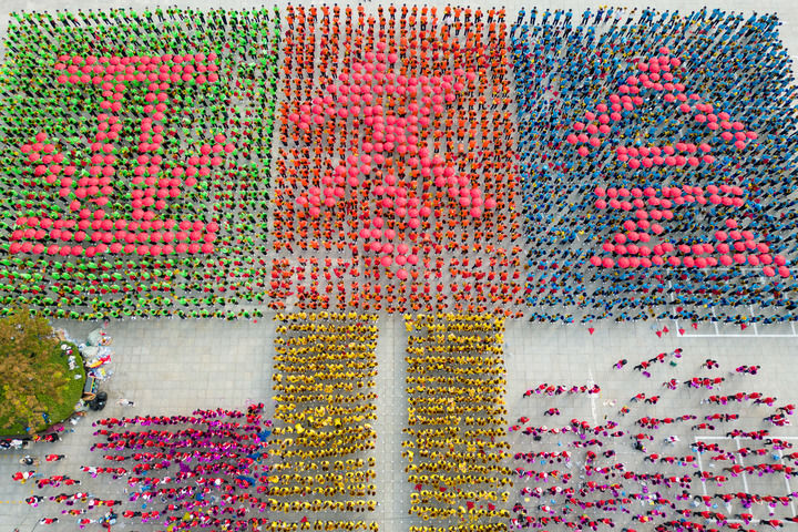 這是2023年7月8日拍攝的在哈爾濱太陽島景區(qū)太陽石廣場(chǎng)舉行的慶祝儀式現(xiàn)場(chǎng)(無人機(jī)照片)。當(dāng)日,中國哈爾濱市獲得2025年第九屆亞洲冬季運(yùn)動(dòng)會(huì)舉辦權(quán)。新華社記者 張濤 攝
