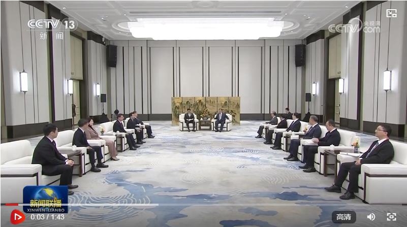 2月7日下午,國家主席習近平在哈爾濱太陽島賓館會見來華出席第九屆亞洲冬季運動會開幕式的韓國國會議長禹元植。