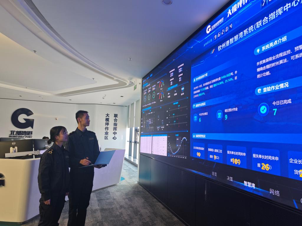 在上線“智慧灣”系統(tǒng)基礎上,海關與港口物流、報關、鐵路等各方打破數(shù)據(jù)信息壁壘,共同破解通關堵點難點問題。2024年,欽州港口岸總體集疏運效率提升約25%。