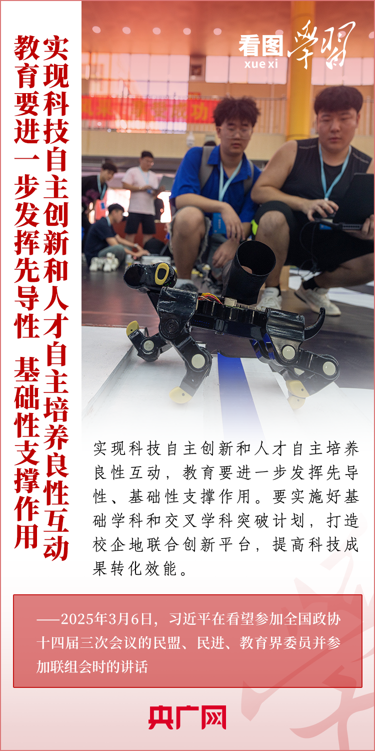 “建設(shè)教育強(qiáng)國(guó)、科技強(qiáng)國(guó)、人才強(qiáng)國(guó),是全黨全社會(huì)的共同責(zé)任?!?月6日,習(xí)近平總書(shū)記在看望參加全國(guó)政協(xié)十四屆三次會(huì)議的民盟、民進(jìn)、教育界委員并參加聯(lián)組會(huì)時(shí)發(fā)表重要講話??倳?shū)記就做好教育、科技、人才工作作出深刻闡釋,強(qiáng)調(diào)必須深刻把握中國(guó)式現(xiàn)代化對(duì)教育、科技、人才的需求,強(qiáng)化教育對(duì)科技和人才的支撐作用,進(jìn)一步形成人才輩出、人盡其才、才盡其用的生動(dòng)局面。一起來(lái)學(xué)習(xí)!