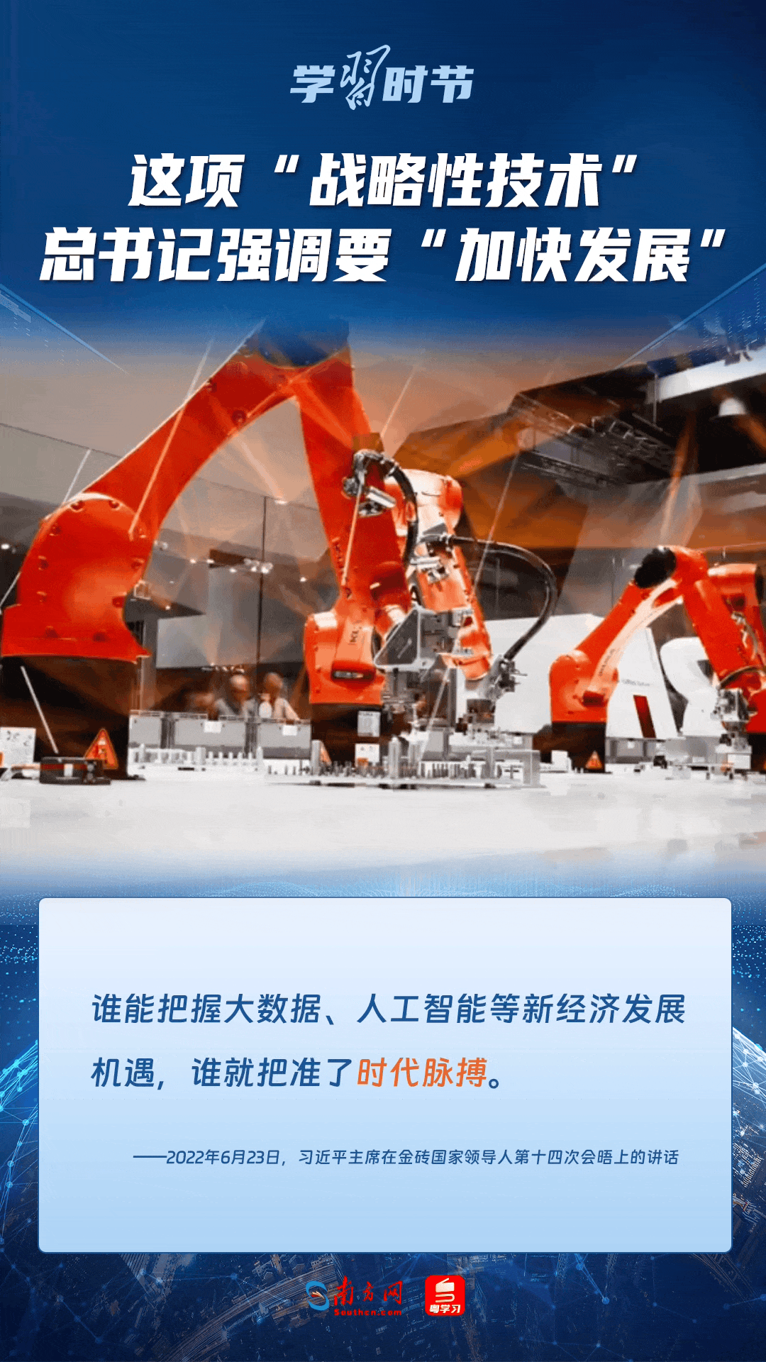人工智能是引領(lǐng)科技革命和產(chǎn)業(yè)變革的戰(zhàn)略性技術(shù)。黨的十八大以來,習(xí)近平總書記把創(chuàng)新擺在國家發(fā)展全局的核心位置,高度重視人工智能發(fā)展,多次談及這項(xiàng)“戰(zhàn)略性技術(shù)”,強(qiáng)調(diào)要“加快發(fā)展”,為人工智能賦能千行百業(yè)指明方向。讓我們一起來學(xué)習(xí)總書記關(guān)于人工智能的重要論述!