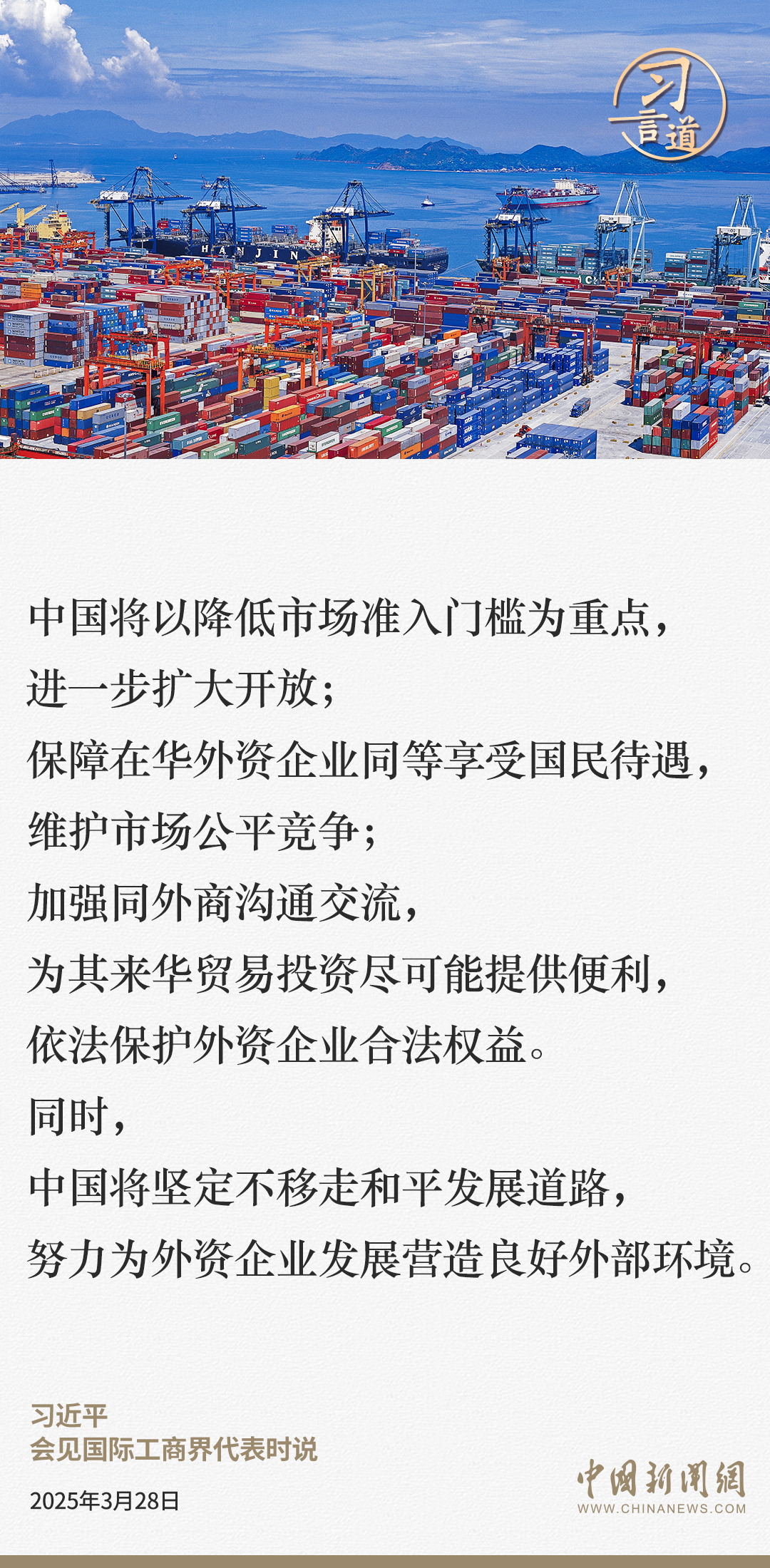 3月28日,國(guó)家主席習(xí)近平在北京人民大會(huì)堂會(huì)見(jiàn)國(guó)際工商界代表。習(xí)近平主席指出——