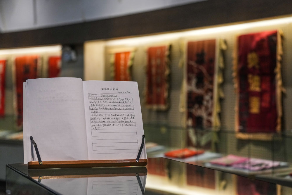 在遼寧省錦州市遼沈戰(zhàn)役紀念館拍攝的參觀者留言簿(2025年4月1日攝)。來自中國醫(yī)科大學的參觀者在留言中寫下“賡續(xù)紅色基因、傳承紅色血脈”。