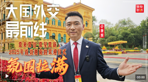 黃色的標(biāo)志性建筑,交相輝映的五星紅旗和金星紅旗,手持中越兩國國旗的小朋友……有沒有一種熟悉又親切的感覺?時(shí)隔一年多,習(xí)近平再次訪越,恰似走親戚、串門般自然。快跟“大國外交最前線”的腳步,一同前往歡迎儀式現(xiàn)場,感受這份熱烈與友好!