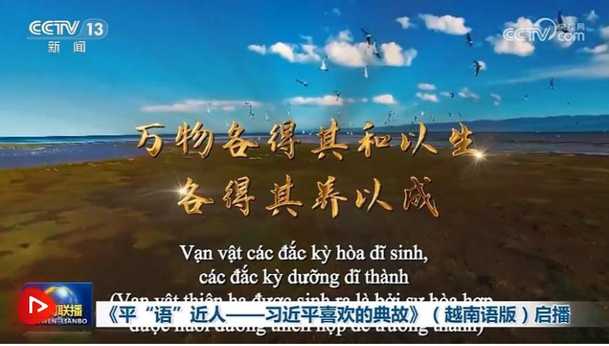 在中共中央總書(shū)記、國(guó)家主席習(xí)近平對(duì)越南進(jìn)行國(guó)事訪問(wèn)之際,4月14日,由中國(guó)中央廣播電視總臺(tái)制作的《平“語(yǔ)”近人——習(xí)近平喜歡的典故》(越南語(yǔ)版)在越南啟播。慶祝中越建交75周年人文交流活動(dòng)同日在河內(nèi)舉行。越南總理范明政致賀信,對(duì)節(jié)目播出和活動(dòng)成功舉辦表示祝賀。