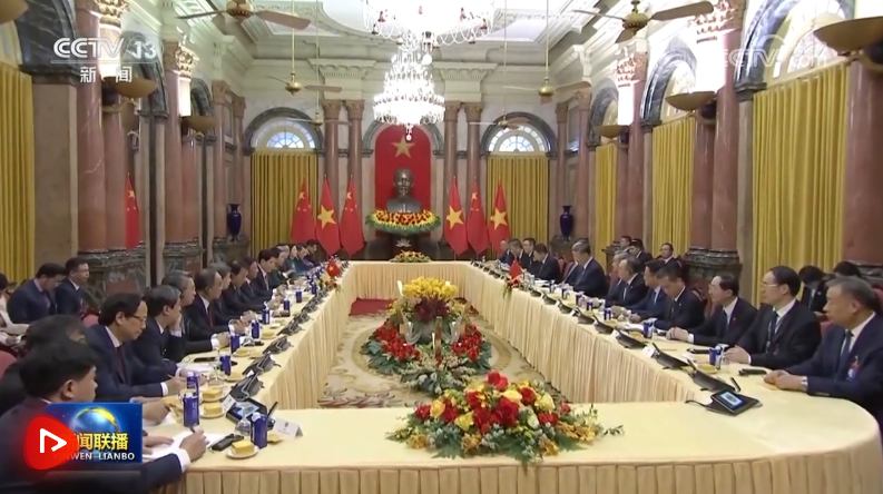 習近平強調(diào),中越雙方要以中越友好合作的穩(wěn)定性和社會主義制度的優(yōu)越性應對外部形勢的不確定性,推動中越命運共同體航船沿著正確航道破浪前行。政治上要把住前行之舵,保持高層戰(zhàn)略溝通,加強治黨治國經(jīng)驗互學互鑒,共同提高黨的領導能力,攜手走穩(wěn)走好各自社會主義道路。安全上要鑄牢團結之錨,以兩國外交、國防、公安“3+3”戰(zhàn)略對話機制升格為契機,持續(xù)深化防務和執(zhí)法安全合作,中方支持越方籌備好越共十四大,支持越方維護國家主權、安全、發(fā)展利益。經(jīng)濟上要執(zhí)穩(wěn)合作之楫,加強發(fā)展戰(zhàn)略對接,落實好共建“一帶一路”倡議和“兩廊一圈”框架對接合作規(guī)劃,深化鐵路、公路、航空多維互聯(lián)互通,保障產(chǎn)業(yè)鏈供應鏈穩(wěn)定暢通,拓展5G、人工智能、綠色發(fā)展等新興領域合作,以新質(zhì)生產(chǎn)力賦能兩國全方位合作格局。人文上要揚起友誼之帆,辦好今年“中越人文交流年”系列活動,實施更多“小而美”民生項目,通過文化、旅游、媒體、地方等交流,讓中越友好更加深入人心。
