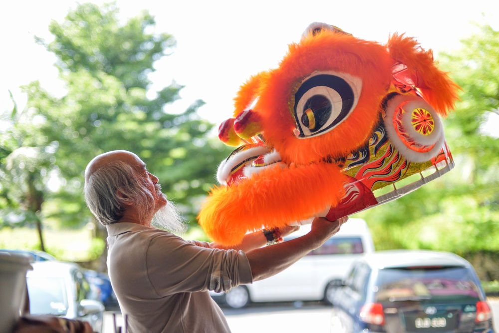 2018年2月1日,在馬來西亞雪蘭莪州沙阿蘭的梳邦濱吉蘭,蕭斐弘端起一個“獅頭”。蕭斐弘祖籍中國廣東潮州,因喜愛中華文化,從小練習舞獅,并成為一名制作獅頭的工匠。他帶領的獅隊屢屢在國際舞獅比賽中獲獎,成功將馬來西亞的舞獅隊伍推向國際舞臺。