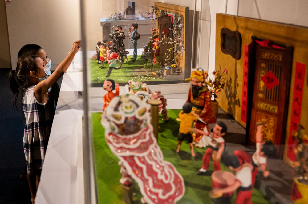 2021年3月27日,小觀眾在馬來西亞吉隆坡國家博物館參觀《中國農歷歷法展》,了解與中國農歷有關的風俗習慣,學習歷法知識。