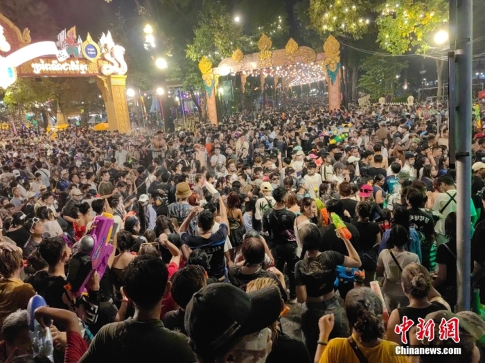 當(dāng)?shù)貢r間4月14日晚,柬埔寨首都金邊市街頭人潮涌動。今年的柬埔寨新年時間為4月14日至16日,該國各大城市推出一系列頗具特色的文旅活動,以期進一步釋放節(jié)假經(jīng)濟潛力。中新社記者 楊強 攝