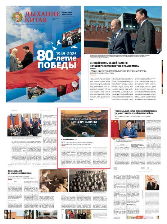 在中國國家主席習(xí)近平對俄羅斯進行國事訪問并出席紀念蘇聯(lián)偉大衛(wèi)國戰(zhàn)爭勝利80周年慶典之際,由中國中央廣播電視總臺制作的《平“語”近人——習(xí)近平喜歡的典故》(國際版),將于當?shù)貢r間5月7日起在俄羅斯全俄國家電視廣播公司、俄羅斯政府機關(guān)報《俄羅斯報》官網(wǎng)、俄羅斯天然氣傳媒控股股份公司、俄羅斯大亞洲電視臺等多個平臺落地播出。亞歐地區(qū)多家主流媒體對節(jié)目落播進行預(yù)告,受到俄羅斯各界普遍期待和廣泛關(guān)注。