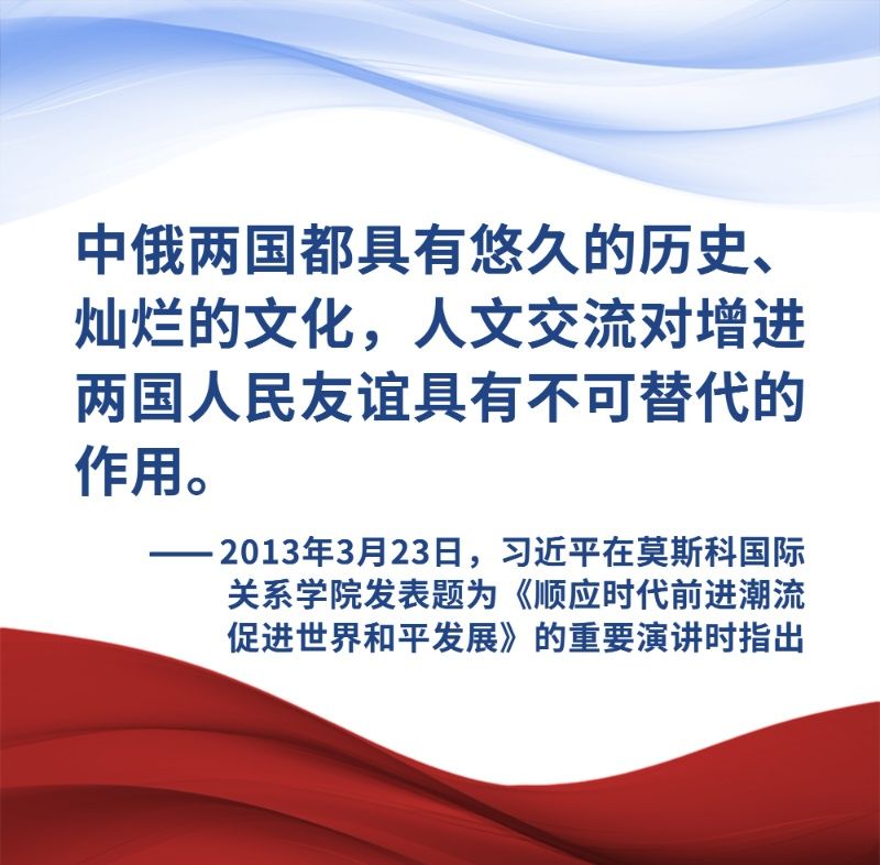 新時代,在元首外交引領(lǐng)下,中俄間豐富多彩的人文交流活動,持續(xù)夯實兩國世代友好的社會和民意基礎(chǔ)。