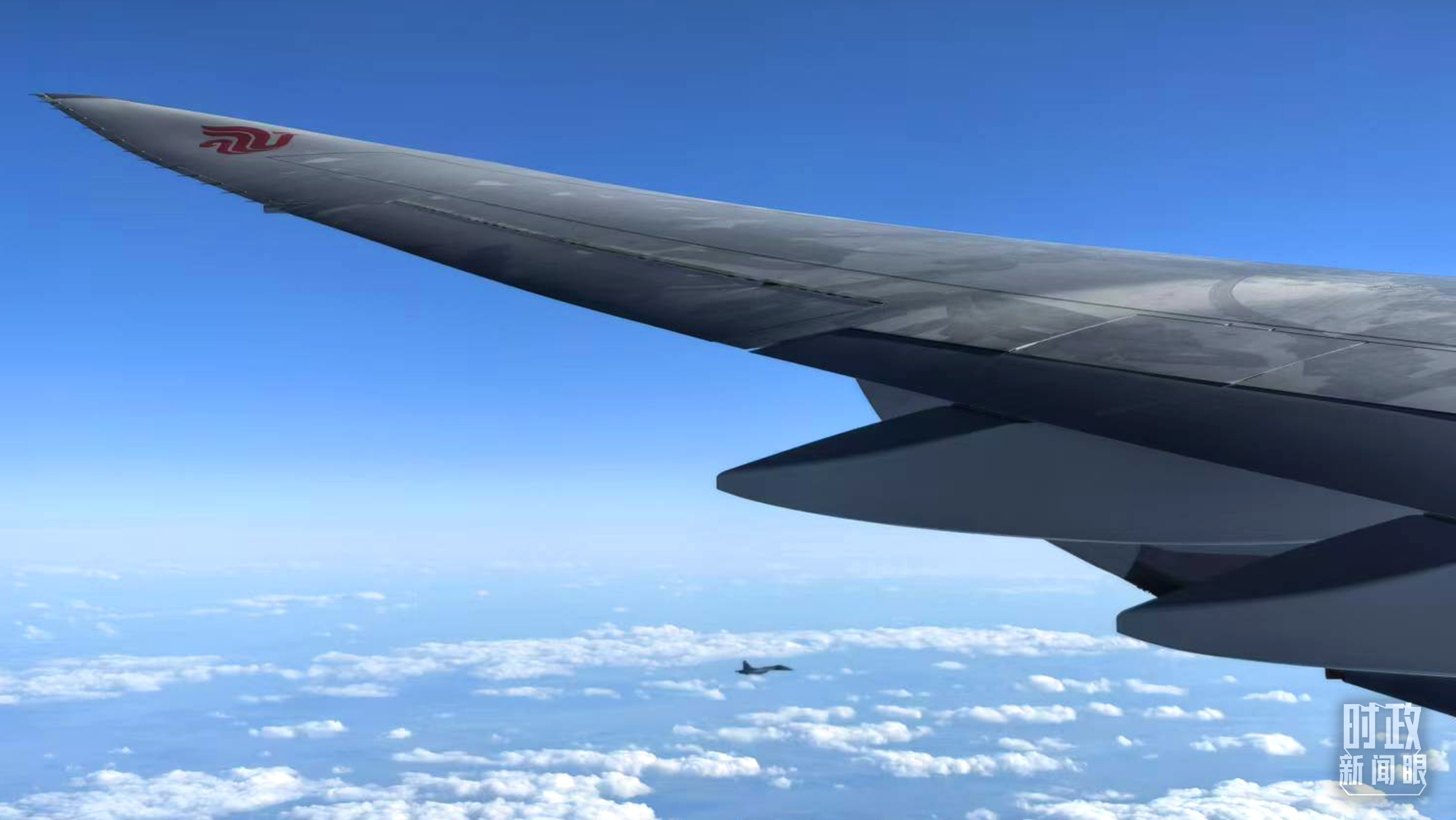 俄羅斯戰(zhàn)機(jī)升空護(hù)航。(總臺央視記者李錚拍攝)