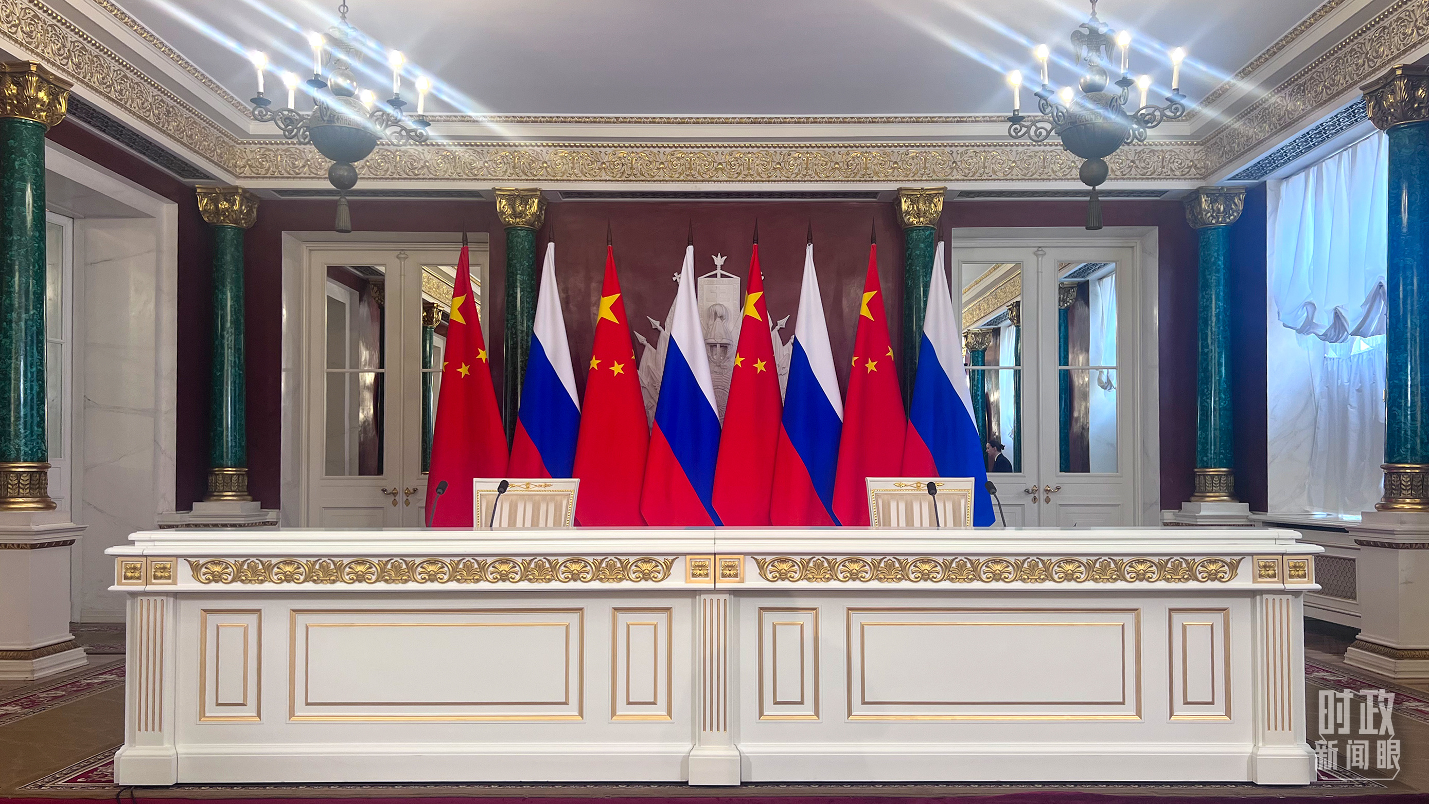習(xí)主席和普京總統(tǒng)舉行大范圍會談的會場。(總臺央視記者趙東辰拍攝)