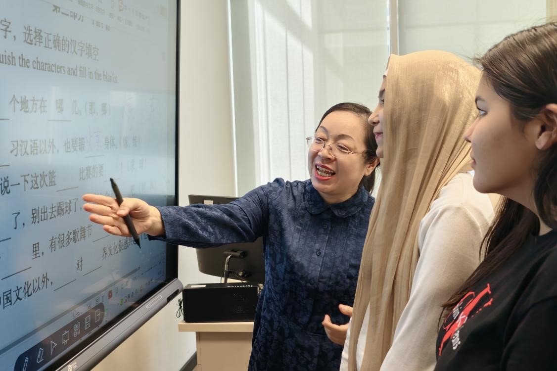 談及近一年的收獲,分校學(xué)生麗瑪向記者唱起了這樣一首歌——“你問我愛你有多深,我愛你有幾分……”麗瑪說,自己以前完全不了解中國文化,中文最多也只知道一句“你好”。在分校的學(xué)習(xí)讓她對中文有了初步了解,也堅(jiān)定了未來繼續(xù)學(xué)習(xí)、深耕這一專業(yè)的決心。