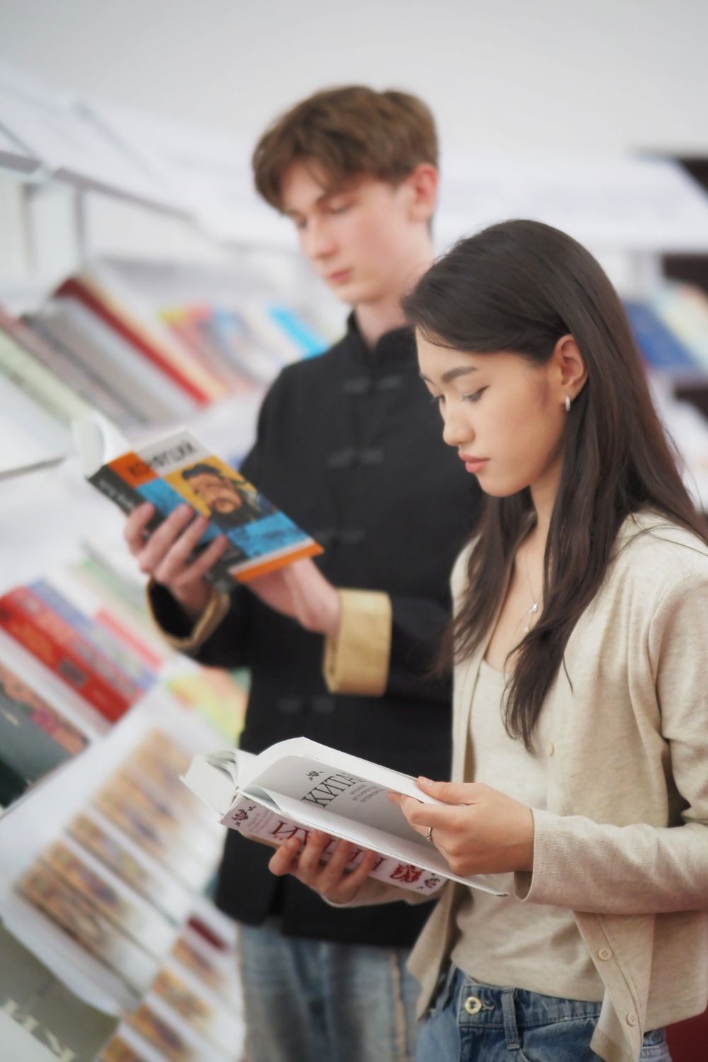 2025年5月31日,在哈薩克斯坦法拉比國立大學(xué),學(xué)生在“中國絲路文學(xué)周”活動(dòng)現(xiàn)場閱讀圖書。2025哈薩克斯坦“中國絲路文學(xué)周”開幕式暨“絲路新韻:文學(xué)讓生活更美好”主題作家座談會(huì)在哈薩克斯坦法拉比國立大學(xué)成功舉辦。后續(xù),還將有多場文學(xué)交流活動(dòng)在哈薩克斯坦主要城市舉辦。