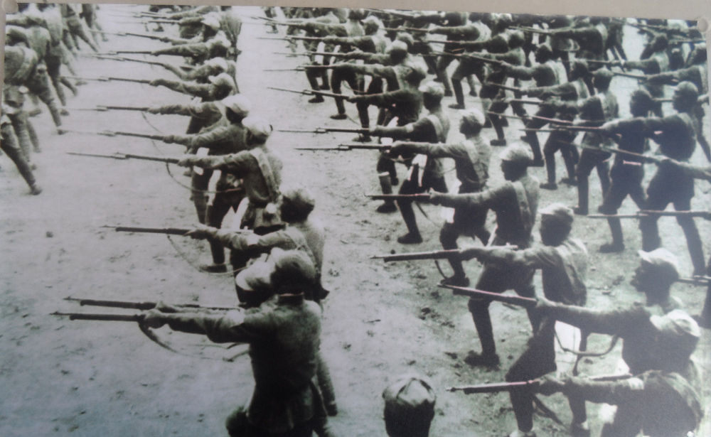 雄連”榮譽(yù)稱號(hào)。這是抗戰(zhàn)時(shí)期,8連官兵苦練刺殺(資料照片)。