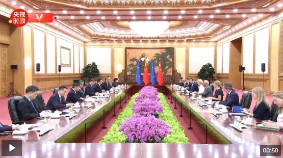7月24日上午,國(guó)家主席習(xí)近平在北京人民大會(huì)堂會(huì)見(jiàn)來(lái)華舉行第二十五次中國(guó)-歐盟領(lǐng)導(dǎo)人會(huì)晤的歐洲理事會(huì)主席科斯塔和歐盟委員會(huì)主席馮德萊恩。