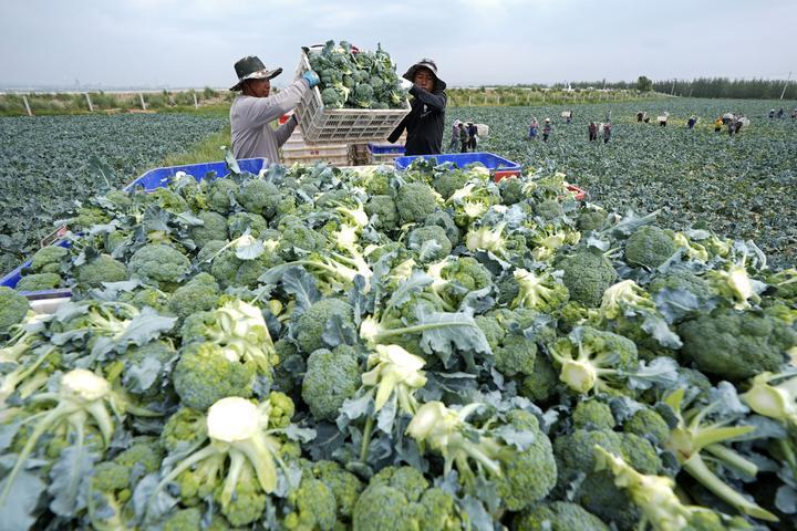 2025年7月18日,工作人員在寧夏固原市原州區(qū)彭堡鎮(zhèn)萬畝冷涼蔬菜基地運(yùn)輸西蘭花。固原依托高海拔、氣候冷涼等“冷資源”優(yōu)勢(shì),大力發(fā)展冷涼蔬菜產(chǎn)業(yè),著力打造“六盤山冷涼蔬菜”區(qū)域公用品牌。目前已建成冷涼蔬菜規(guī)模化種植基地130余個(gè),種植面積穩(wěn)定在50萬畝,年產(chǎn)鮮菜200萬噸以上?!傲P山冷涼蔬菜”這張打造的“綠色名片”,已成為當(dāng)?shù)剜l(xiāng)村振興發(fā)展之路上的“熱產(chǎn)業(yè)”