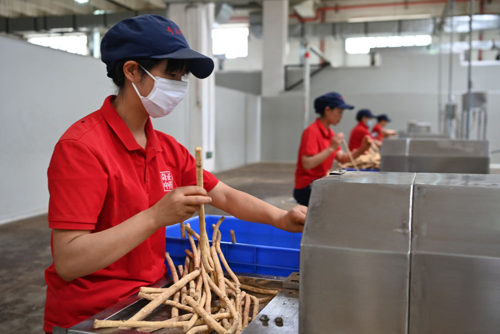 2024年7月23日,工人在甘肅定西隴西縣文峰鎮(zhèn)一家藥材企業(yè)加工中藥材切片。隴西中藥材種植歷史悠久,盛產(chǎn)300余種中藥材,是全國“道地藥材”的重要產(chǎn)區(qū)之一。近年來,當(dāng)?shù)赝ㄟ^推行產(chǎn)地種植標(biāo)準(zhǔn)化、藥材加工精深化、原藥倉儲(chǔ)規(guī)?;?、藥材交易市場化、質(zhì)量監(jiān)測常態(tài)化、產(chǎn)業(yè)發(fā)展品牌化等改革創(chuàng)新舉措,推動(dòng)中醫(yī)藥產(chǎn)業(yè)高質(zhì)量發(fā)展。