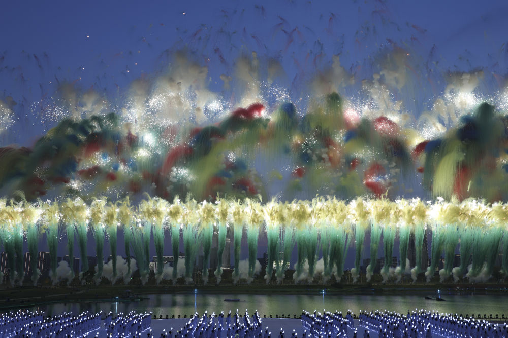 2025年8月7日在第12屆世界運(yùn)動會開幕式上拍攝的焰火表演。