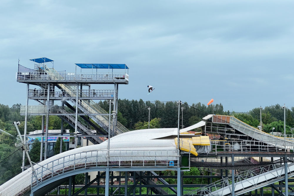 2024年8月9日,一名運(yùn)動員在四川成都尖鋒旱雪四季滑雪場訓(xùn)練。