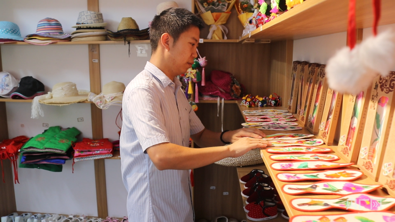 從外地返鄉(xiāng)的“90后”扶銀廷和妻子,在田鋪大塆創(chuàng)辦了一家“文創(chuàng)工坊”?!跋裥瑝|、虎頭枕、虎頭帽這些手工制品,都是我們當(dāng)?shù)匾恍├先恕⒋蠼闶止ぷ龅?。這些特色的文創(chuàng)產(chǎn)品既能讓游客了解當(dāng)?shù)乇就廖幕衷黾恿舜迕袷杖??!狈鲢y廷說(shuō)。