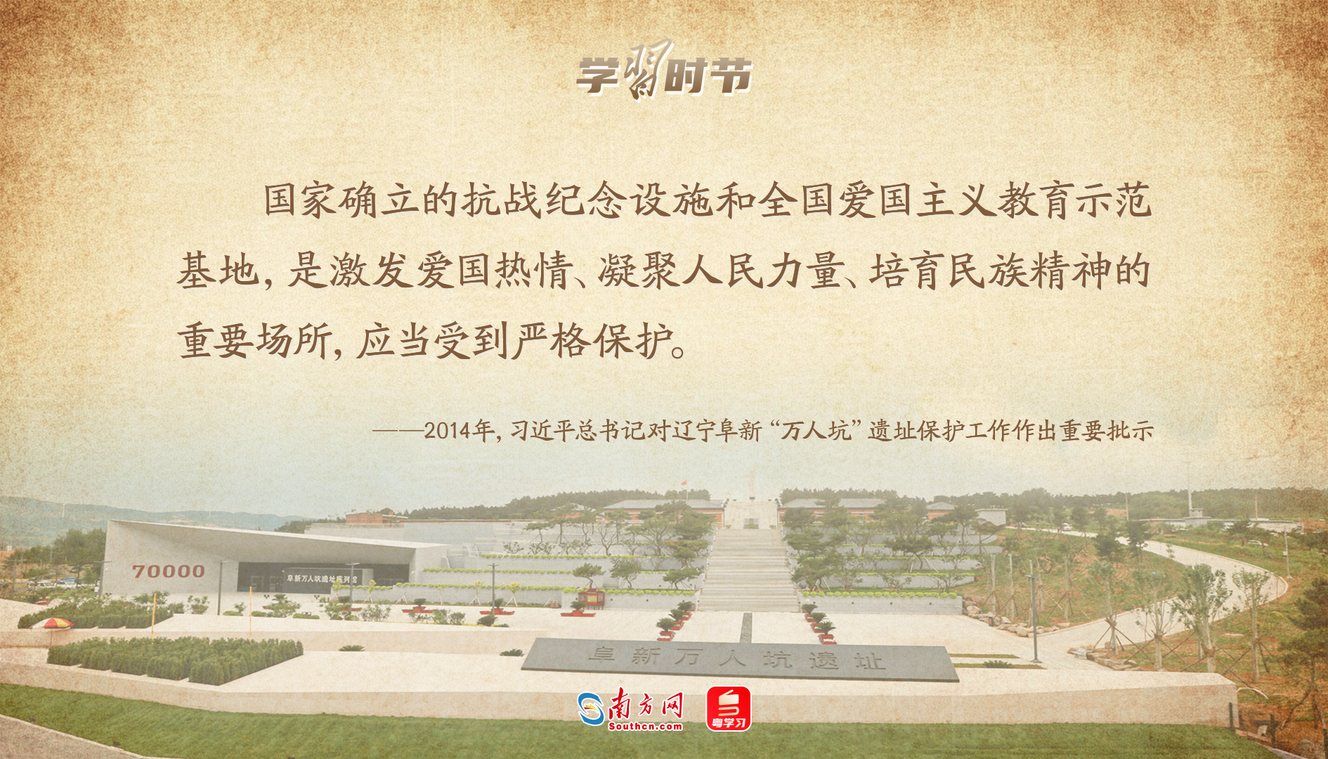 “國家確立的抗戰(zhàn)紀念設施和全國愛國主義教育示范基地,是激發(fā)愛國熱情、凝聚人民力量、培育民族精神的重要場所,應當受到嚴格保護。”