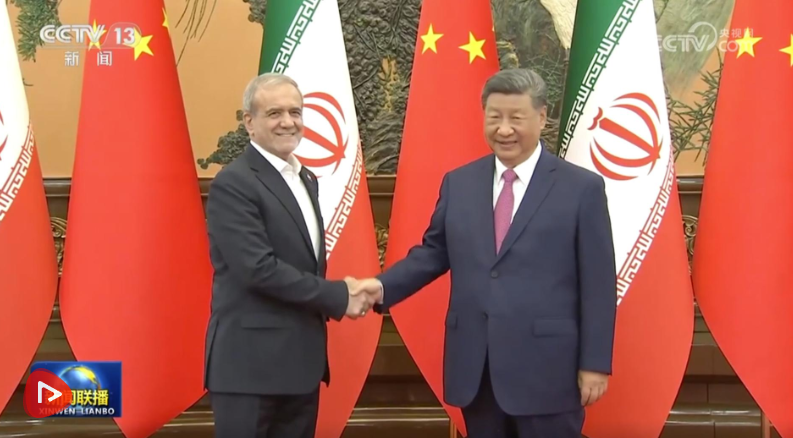 習近平指出,中伊關系經(jīng)受住國際風云變幻考驗,保持平穩(wěn)健康發(fā)展。去年我們在喀山會晤后,兩國各部門積極落實雙方達成的重要共識,中伊各領域合作取得不少新成果。中方始終把發(fā)展對伊關系置于中國中東外交重要位置,愿同伊方賡續(xù)友好,深化互信,加強在貿(mào)易、投資、清潔能源、互聯(lián)互通等領域合作,增進人文交往,攜手推動中伊全面戰(zhàn)略伙伴關系行穩(wěn)致遠。中方提出全球治理倡議,愿同包括伊朗在內(nèi)的國際社會一道,推動構建更加公正合理的全球治理體系,攜手構建人類命運共同體。