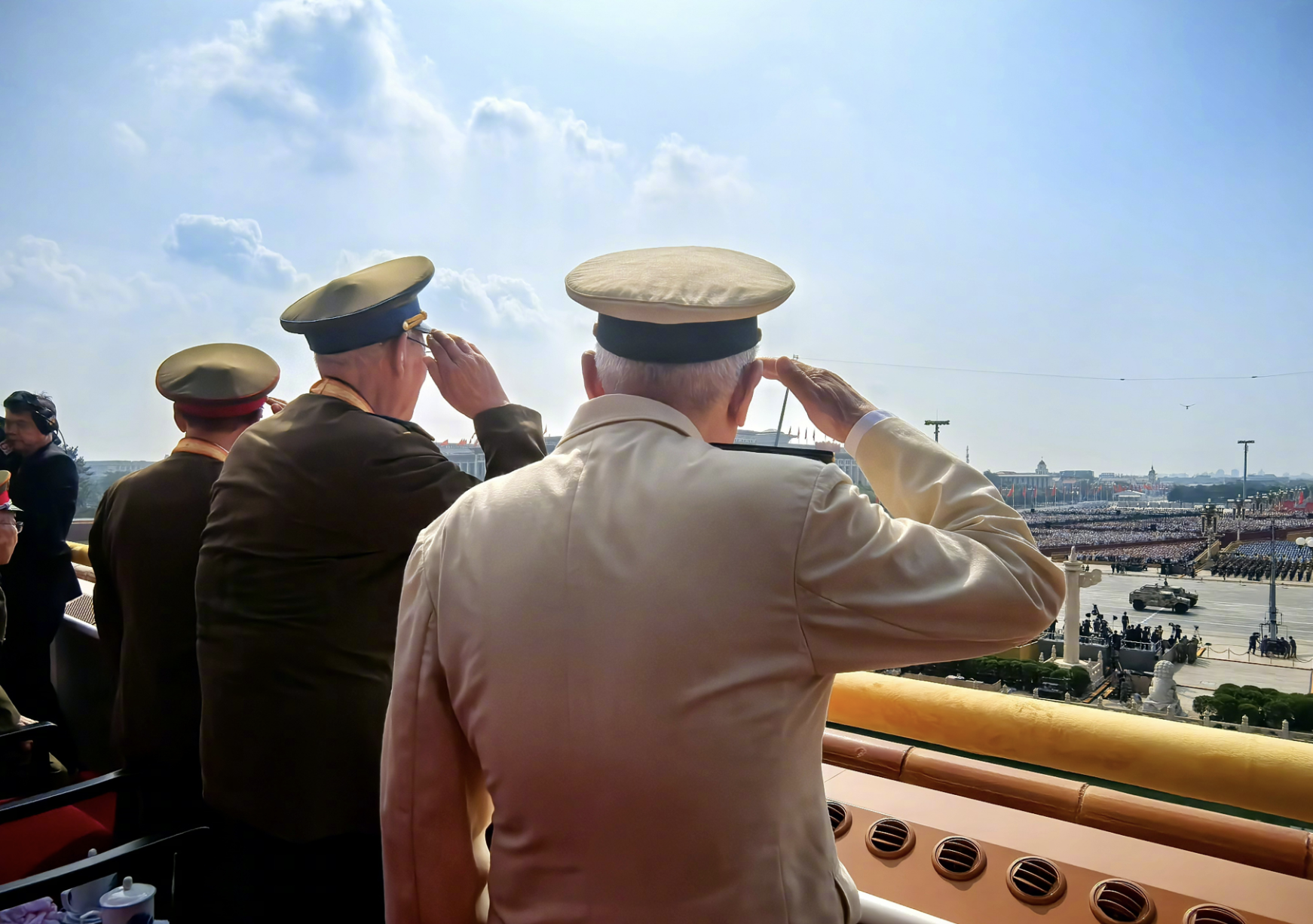 天安門城樓上,參加過抗戰(zhàn)的老戰(zhàn)士