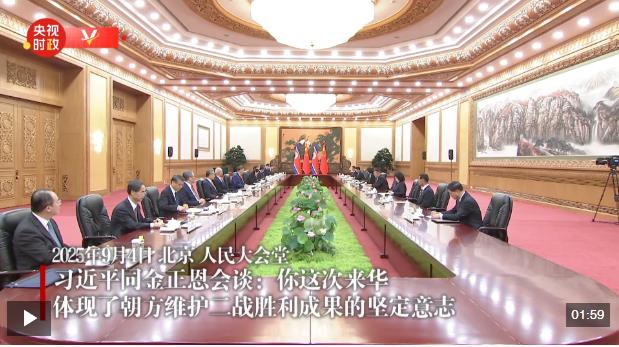 9月4日晚,中共中央總書記、國家主席習(xí)近平在北京人民大會(huì)堂同來華出席紀(jì)念中國人民抗日戰(zhàn)爭暨世界反法西斯戰(zhàn)爭勝利80周年活動(dòng)的朝鮮勞動(dòng)黨總書記、國務(wù)委員長金正恩舉行會(huì)談。