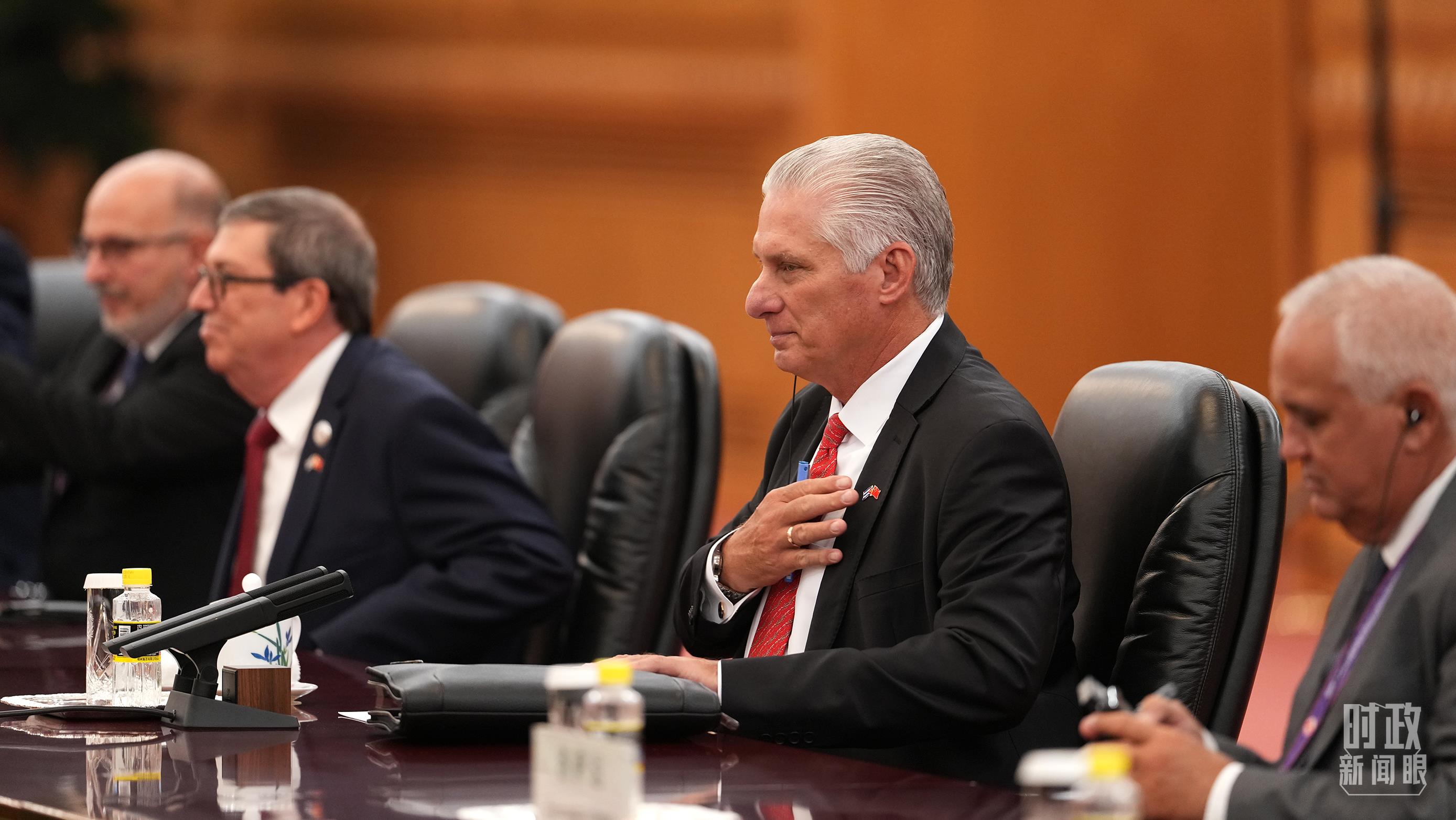 △古巴共產(chǎn)黨中央委員會第一書記、古巴國家主席迪亞斯-卡內(nèi)爾在會見中。(總臺記者李晉拍攝)