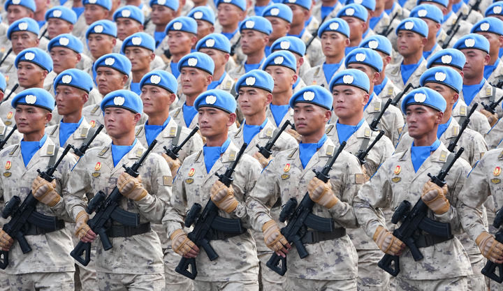 2025年9月3日,紀(jì)念中國人民抗日戰(zhàn)爭暨世界反法西斯戰(zhàn)爭勝利80周年大會(huì)在北京隆重舉行。這是維和部隊(duì)方隊(duì)接受檢閱。