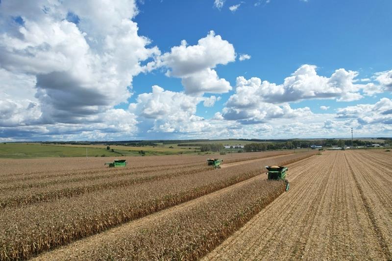 2025年9月10日,在北大荒集團(tuán)黑龍江建設(shè)農(nóng)場有限公司第三管理區(qū),大馬力機(jī)車在進(jìn)行玉米搶收作業(yè)。