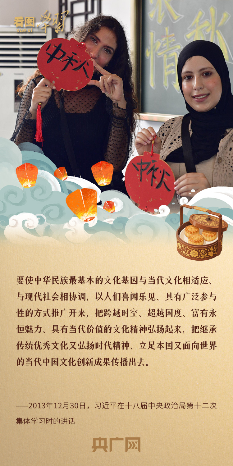 中秋節(jié)是我國四大傳統(tǒng)節(jié)日之一,承載著中華民族優(yōu)秀傳統(tǒng)文化底蘊,寄托著中國人濃濃的家國情懷和圓滿和諧的美好追求。習(xí)近平總書記曾指出,要“把歷經(jīng)滄桑留下的中華文明瑰寶呵護好、弘揚好、發(fā)展好”。中秋佳節(jié),讓我們一起重溫總書記關(guān)于中華優(yōu)秀傳統(tǒng)文化的深刻闡釋、深情囑托,堅定文化自信,更好構(gòu)筑中國精神、中國價值、中國力量。