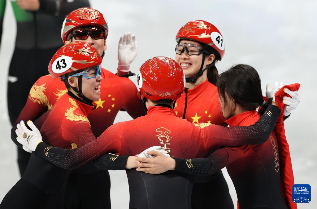 2022年2月5日,在首都體育館舉行的北京2022年冬奧會(huì)短道速滑項(xiàng)目混合團(tuán)體接力決賽中,中國隊(duì)奪得冠軍。這是中國隊(duì)選手在比賽后慶祝。新華社記者 楊磊 攝