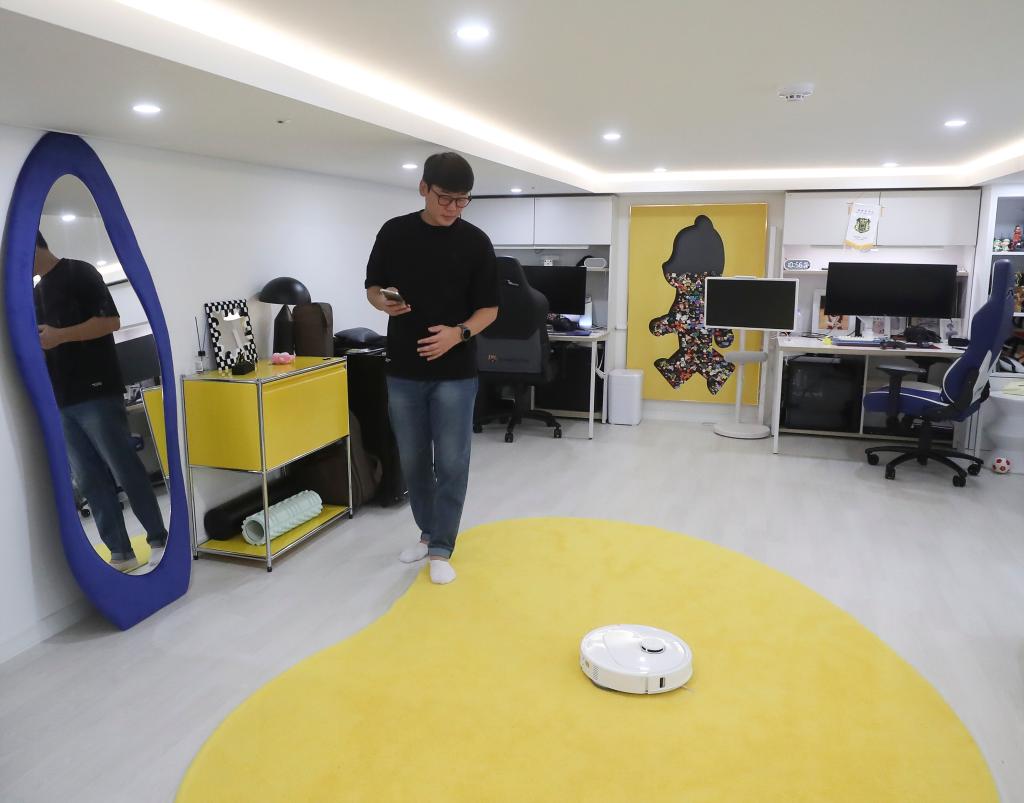 2025年10月13日,韓國消費者在首爾的家中使用掃地機器人。新華社記者姚琪琳攝