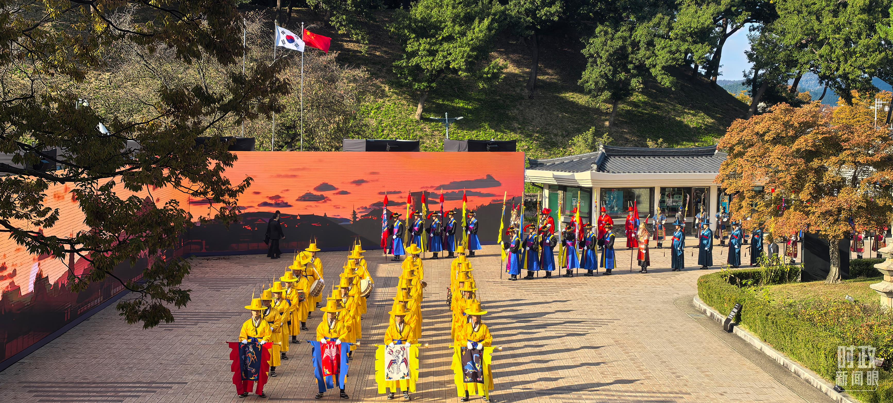 在慶州博物館的千年微笑館,李在明總統(tǒng)為習(xí)主席舉行高規(guī)格歡迎儀式,身著傳統(tǒng)民族服飾的韓國禮儀隊(duì),隆重歡迎習(xí)主席到來。
