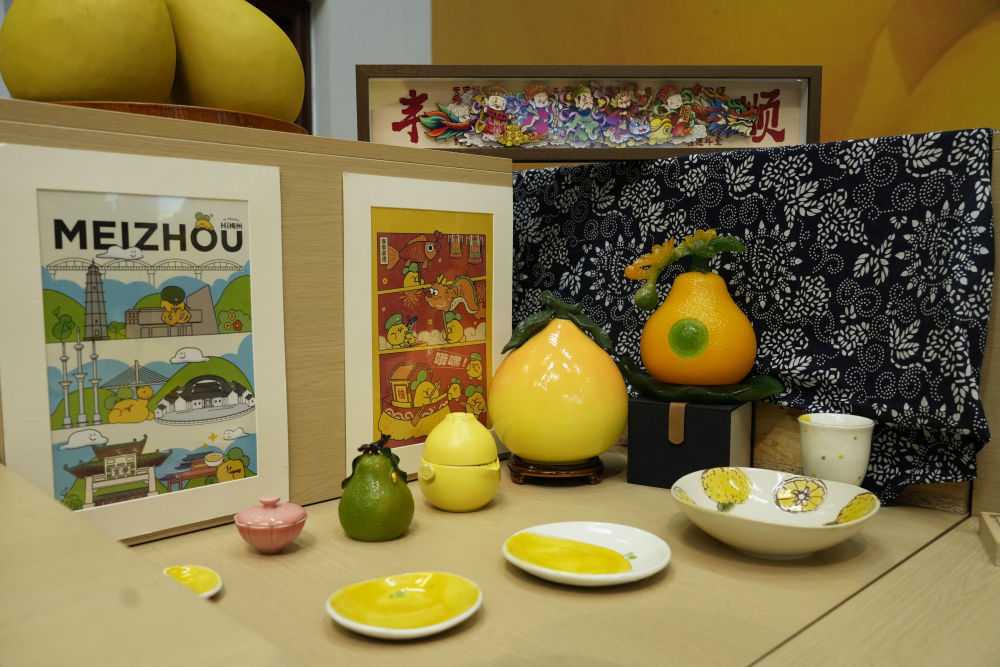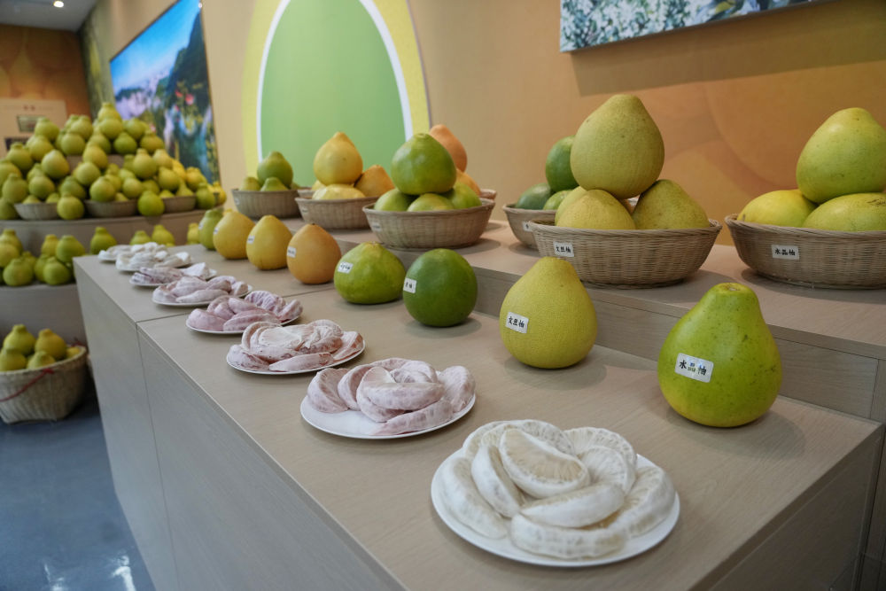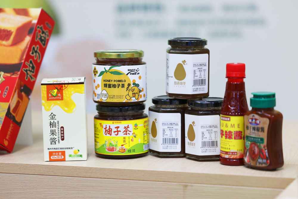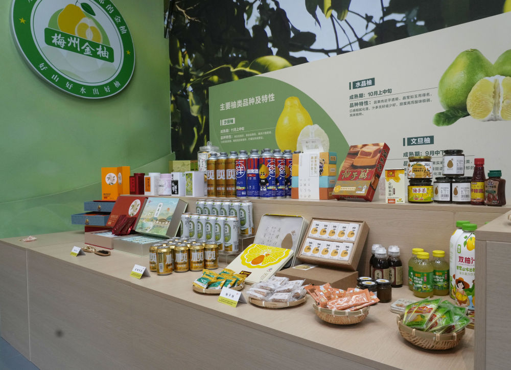 2025年11月7日在梅州南福金柚種植基地拍攝的金柚及相關(guān)產(chǎn)品。