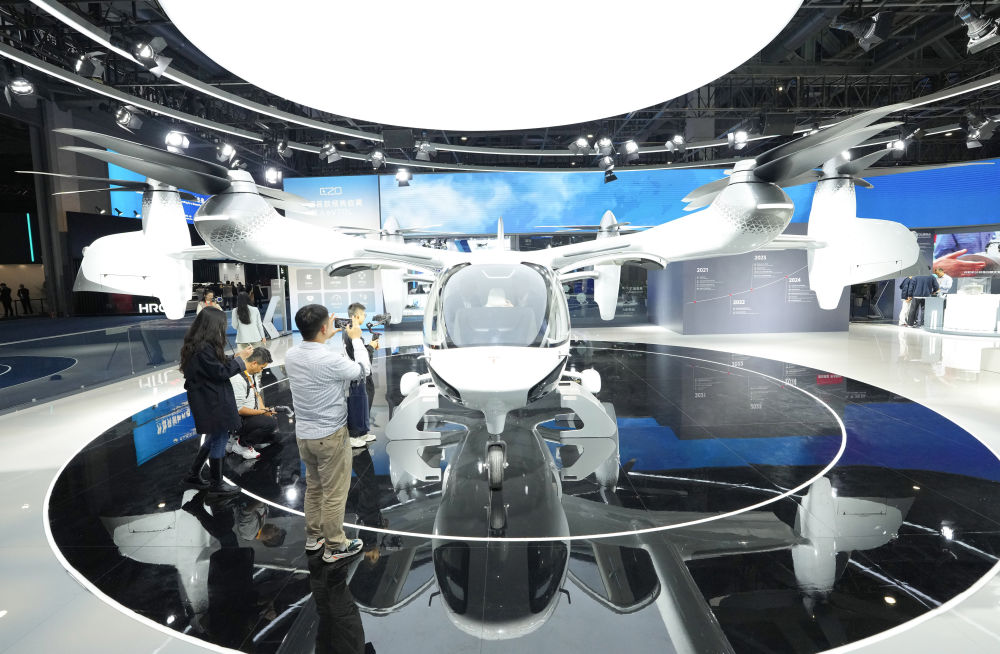 2025年11月5日在第八屆進博會汽車及智慧出行展區(qū)拍攝的時的科技E20 eVTOL(電動垂直起降飛行器)。在第八屆進博會上,一批新型移動出行產(chǎn)品與創(chuàng)新技術(shù)集中亮相。從智能駕駛到低空出行,從新能源解決方案到人性化設(shè)計……一幅多元化、立體化的未來出行圖景正徐徐展開。