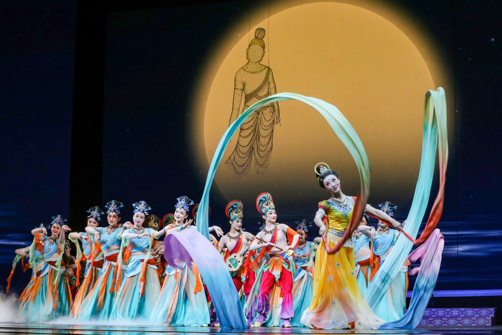 2025年9月20日,演員在敦煌大劇院表演新版《絲路花雨》。1979年,大型民族舞劇《絲路花雨》在中國西北誕生。編創(chuàng)者們從敦煌莫高窟的壁畫和彩塑中尋找靈感,將壁畫上凝固了千年的舞姿,轉化為動態(tài)舞蹈語言。40多年來,《絲路花雨》累計演出超4000場,足跡遍布40多個國家和地區(qū),被譽為“中國舞劇的里程碑”和“活的敦煌壁畫、美的藝術享受”。此次新版歷經兩年半創(chuàng)排,通過復原與創(chuàng)新對經典藝術進行當代詮釋,彰顯了中華優(yōu)秀傳統(tǒng)文化的生命力。