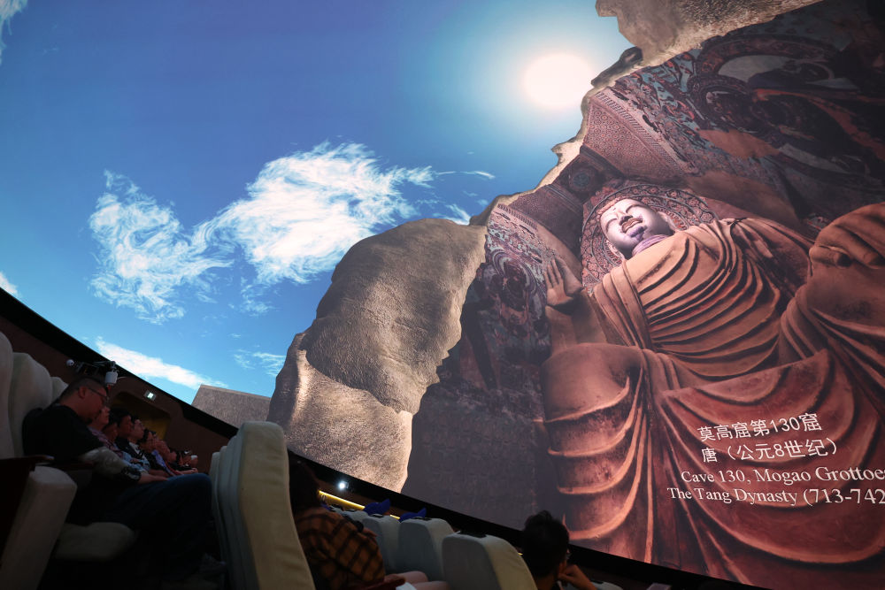 2024年9月4日,游客在敦煌莫高窟數字展示中心觀看球幕電影《夢幻佛宮》。