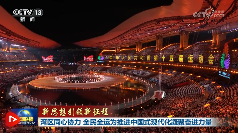 央視網(wǎng)消息(新聞聯(lián)播):習(xí)近平總書記近日在廣東考察并出席第十五屆全運(yùn)會開幕式時指出,通過舉辦這場盛會,可以激發(fā)愛國熱情,拉緊精神紐帶,促進(jìn)開放合作、互利共贏,為大灣區(qū)建設(shè)營造良好氛圍。從11月9日至21日,由粵港澳三地共同舉辦的這屆全運(yùn)會,燃動大灣區(qū),生動詮釋體育的激情與魅力;三地同心協(xié)力、交流融合,讓大灣區(qū)煥發(fā)新的光彩。11月21日晚,本屆全運(yùn)會閉幕。這屆盛會不僅展示了新時代中國體育事業(yè)發(fā)展的新成就,也生動展現(xiàn)了中國式現(xiàn)代化在粵港澳大灣區(qū)的萬千氣象。