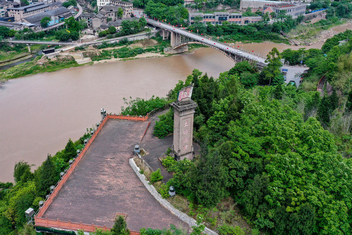 位于赤水河畔的貴州省遵義市習(xí)水縣土城鎮(zhèn),是赤水河中游的重要碼頭,同時也被稱作“躺在紀(jì)念館上的紅色小鎮(zhèn)”。1935年,中央紅軍在土城一渡赤水河,拉開了四渡赤水戰(zhàn)役的序幕。這是2021年4月21日拍攝的土城渡口紀(jì)念碑(無人機(jī)照片)。