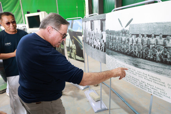 2025年7月16日,美中航空遺產(chǎn)基金會主席杰夫·格林在貴州黃平舊州機(jī)場查看飛虎隊資料照片。抗戰(zhàn)時期,舊州機(jī)場主要承擔(dān)飛機(jī)加油、彈藥補(bǔ)充和維修任務(wù)。常駐于此的美國飛虎隊?wèi)?zhàn)機(jī)頻頻在該機(jī)場起降,參加了湘西會戰(zhàn)、衡陽保衛(wèi)戰(zhàn)等著名戰(zhàn)役。該機(jī)場見證了中美聯(lián)合反抗法西斯的光輝歷史,還為確保“駝峰航線”的順利暢通發(fā)揮了舉足輕重的作用。