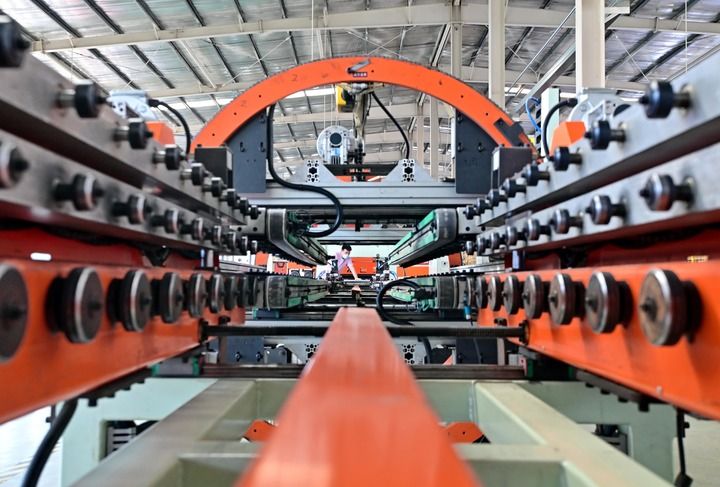 2025年6月18日,河北省唐山市蘆臺(tái)經(jīng)濟(jì)開(kāi)發(fā)區(qū)一家采暖設(shè)備企業(yè)的工人在生產(chǎn)線上工作。新華社記者 楊世堯 攝
