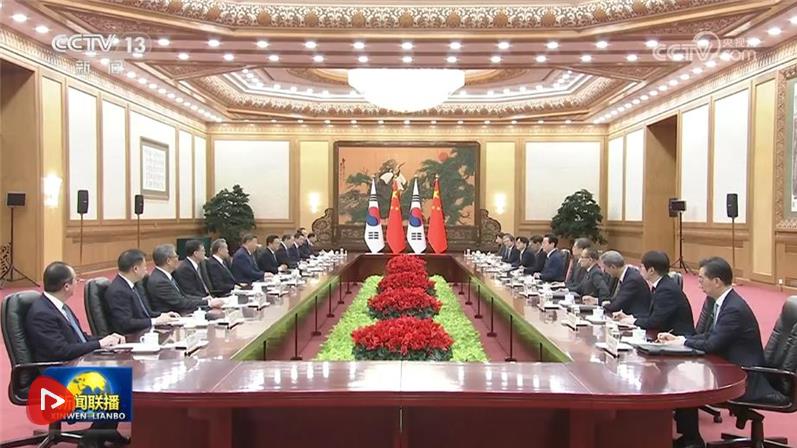 習近平指出,當前世界百年變局加速演進,國際形勢更加變亂交織。中韓在維護地區(qū)和平、促進全球發(fā)展方面肩負重要責任,有廣泛利益交集,應當堅定站在歷史正確一邊,作出正確戰(zhàn)略選擇。80多年前,中韓兩國付出巨大民族犧牲,贏得抗擊日本軍國主義的勝利。今天更應攜手捍衛(wèi)二戰(zhàn)勝利成果,守護東北亞和平穩(wěn)定。作為經(jīng)濟全球化的受益者,中韓要共同反對保護主義,踐行真正的多邊主義,為推進平等有序的世界多極化、普惠包容的經(jīng)濟全球化作出貢獻。