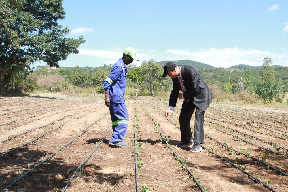 2025年5月14日,在位于津巴布韋中馬紹納蘭省的中國—津巴布韋農(nóng)業(yè)合作示范村,中方農(nóng)業(yè)專家指導(dǎo)當(dāng)?shù)卮迕?。新華社發(fā)(塔法拉 攝)