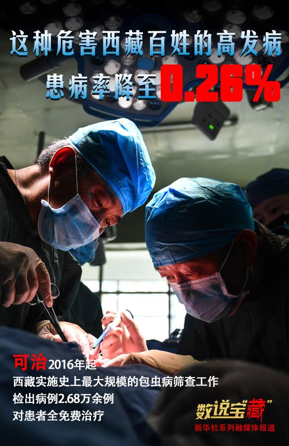 曾讓高原群眾談之色變的包蟲病,如今漸漸退出歷史舞臺。西藏自治區(qū)衛(wèi)生健康委主任格桑玉珍向記者介紹,經(jīng)過全人群篩查和免費治療,西藏自治區(qū)74個縣(區(qū))中包蟲病人群患病率低于1%的縣(區(qū))達到70個,患病率從2016年的1.66%下降至目前的0.26%,接近于全國平均水平。